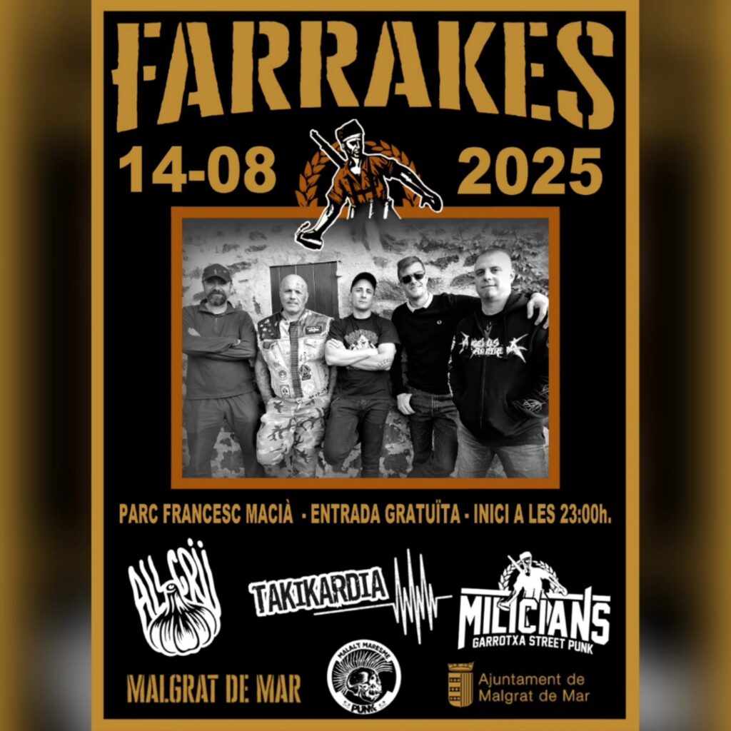 Farrakes Malgrat de Mar: 𝗗𝗜𝗝𝗢𝗨𝗦 𝟭𝟰 𝗗 𝗔𝗚𝗢𝗦𝗧 𝗔 𝗟𝗘𝗦 𝗙𝗔𝗥𝗥𝗔𝗞𝗘𝗦 𝗗𝗘 𝗠𝗔𝗟𝗚𝗥𝗔𝗧 𝗗𝗘 𝗠𝗔𝗥!!! @allcrupunkrock @takikardiagrup i Milícians!!!!
